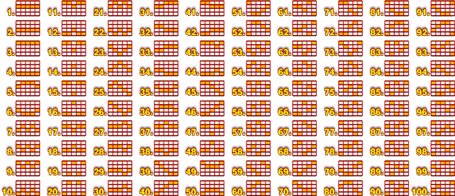 Alle Symbole zählen von links nach rechts, beginnend mit der äußeren linken Walze.